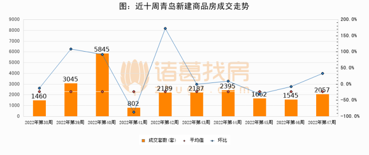 【青岛成交周报】第47周新房成交2057套,二手房1023套,涨价房源880套