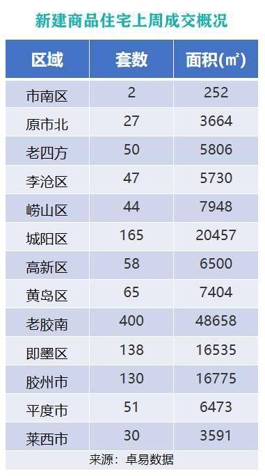 从各区成交情况来看,上周原胶南市新建商品住宅以成交面积48658㎡的成绩,位列上周各片区新建商品住宅成交面积榜首位;城阳区以成交面积20457㎡的成绩,位列成交面积榜第二位;胶州市以成交面积16775㎡的成绩,位列成交面积榜第三位。
