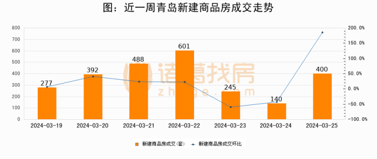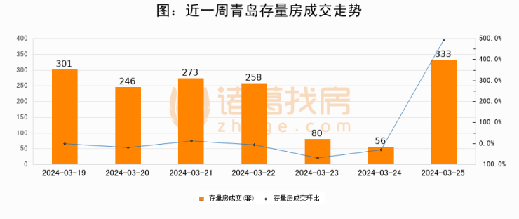 【青岛成交日报】03月25日新房成交400套、二手房333套;涨价房源90套