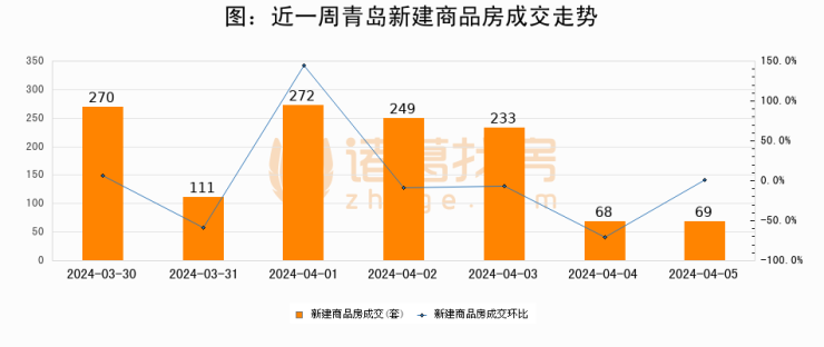 【青岛成交日报】04月05日新房成交69套、二手房42套;涨价房源22套