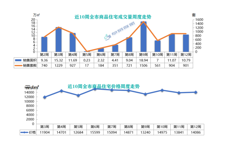 价格方面,上周青岛新建商品住宅均价为14086元/㎡,上涨245元/㎡,涨幅为1.77%。