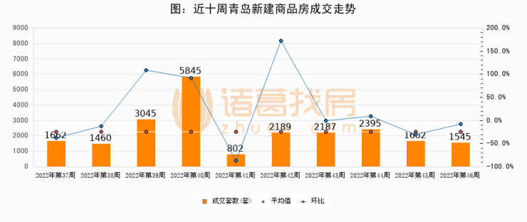 【青岛成交周报】第46周新房成交1545套,二手房789套,涨价房源619套