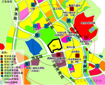 2、教育与医疗:现状周边有2处幼儿园、1处小学,规划1处幼儿园、2处小学、1处九年一贯制;现状周边有1处区级社会福利院(西海岸社会福利院,改扩建2400床),规划一处区级综合医院(330床)、两处社区卫生服务中心。