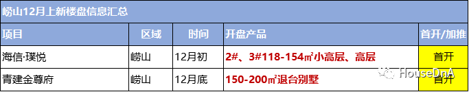今年崂山新盘不多,海尔11月已低调入市,海信新盘璞悦计划12月初首开两栋118-154㎡装修住宅,预计小高层均价36000-39000元,高层均价34000-35000元,目前142㎡样板间已经对外开放。另外位于观光园附近的青建金尊府,主推市面上较少的退台别墅,建面150-200㎡,预计较快12月底面世,或将还将再推迟入市时间。