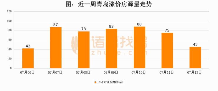 根据诸葛找房数据显示,青岛24小时涨价房源量为45套,较07月11日减少30套,环比下降40%。与此同时,涨价房源占比小幅回落,对于购房者来说是一个入市窗口期,购房者可抓住时机入市。