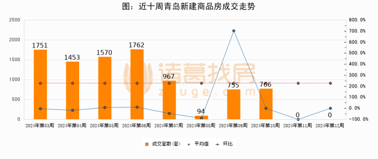 进入2024年第11周(03月11日-03月17日),青岛新建商品房成交0套,较上周持平
