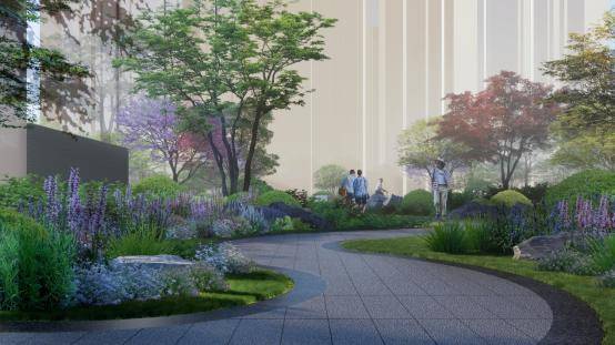 项目采用新中式园林景观设计风格,借鉴恭王府的礼制布局,提取传统的府园造园手法,通过空间的开合,营造出“三环五进八景”的景观格局,多重景致,一步一景,营造出层次丰富的景观空间。