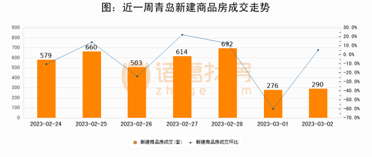 【青岛成交日报】03月02日新房成交290套、二手房358套;涨价房源232套