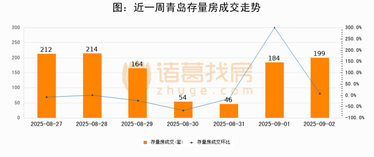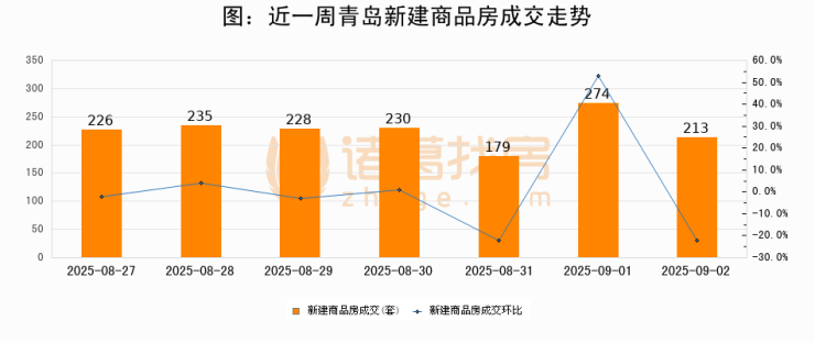 【青岛成交日报】09月02日新房成交213套、二手房199套;