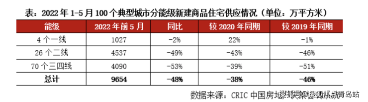 6月28日,克而瑞地产研究中心发布的报告显示,今年前5个月全国100个重点城市商品住宅新增供应面积9654万平方米,同比下降48%,创2019年以来同期新低。