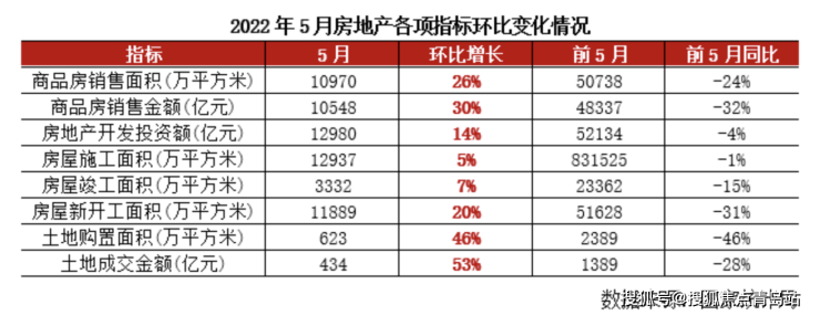 报告显示,2022年1-2月,商品房销售面积和金额分别同比下降9.6%和19.3%,增速降至近7年次低。到了4月份,受国内疫情冲击明显的超预期影响,经济新的下行压力进一步加大。房地产行业销售与投资双双进入负增长。进入5月份,行业主要指标开始改善,单月新房销售规模和开发投资规模分别环比上涨26%和14%。商品房销售均价、房屋新开工面积和土地购置面积分别环比上涨3%、20%和46%。行业到达“市场底”出现实质好转,市场信心开始恢复。从投资端来看,房企受困于自身资金压力和融资困境,大幅放缓投资行为。随着5月各地资金监管放松,房企到位资金环比上涨。因此房企积极投入再投资中以加快房屋建造,并及时恢复施工强度。尤其亮眼的是房屋新开工和土地购置,两项指标环比大涨重新成为整体投资的支撑力量。但仍需注意的是,开发投资规模5月仍为2022年次低。新房销售尚未完全恢复,行业投资仍处于历史较低点。