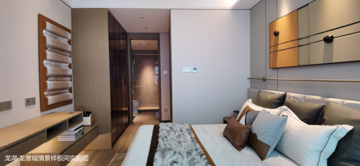 主卧套房,配置独立卫生间与衣帽间,卫浴间采用干湿分离设计,使用不同功能也互不影响,营造兼具私密及舒适的环境。