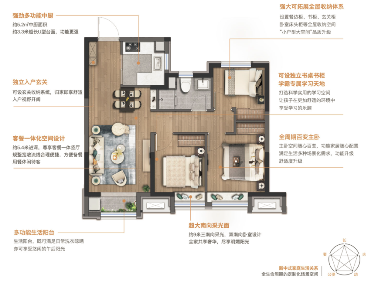 新时代的户型空间趋势,再不是单一的面积大小改变,而是在此基础上关注空间的延展性和功能性,既满足家庭的全生命周期需求,又兼具个性与舒适。