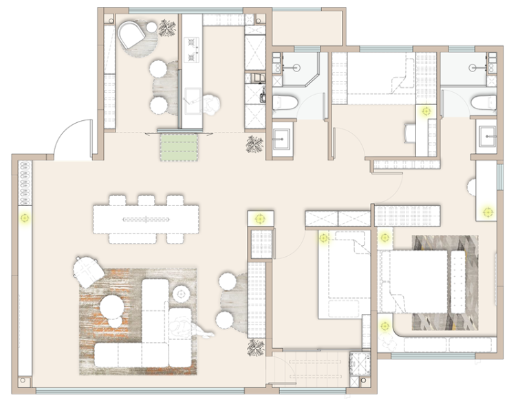 阔境洋房,将美好生活一步到位。138㎡改善洋房读懂当代理想生活需求,通透舒阔格局约7.25米超大宽厅、全屋收纳系统等、大尺度空间设计,满足多样居住需求。