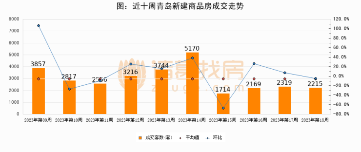 【青岛成交周报】第18周新房成交2215套,二手房1373套,涨价房源529套