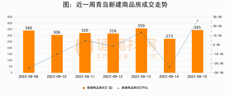 【青岛成交日报】09月15日新房成交345套、二手房233套;涨价房源16套