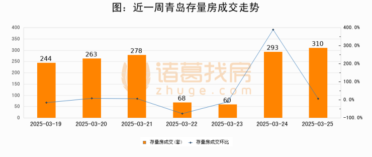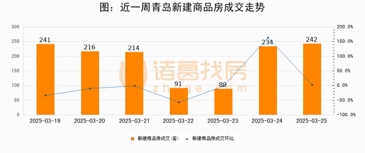 【青岛成交日报】03月25日新房成交242套、二手房310套;涨价房源12套