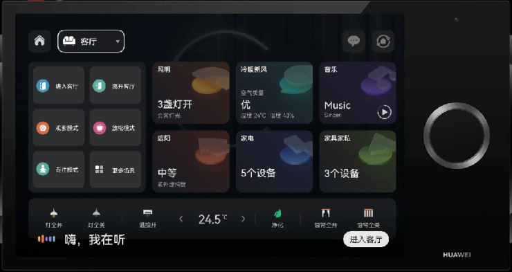 和樾府与华为智能家居的强强联合,也将室内空气品质的控制,提升到了更新、更智慧的层面。智能家居系统可以根据户内空气的实时状况(PM2.5、温湿度等),自动控制新风、空调设备开关,保持室内的空气清新度与温湿度处在恒定且舒适的状态。