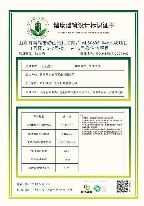 和樾府健康建筑标志证书