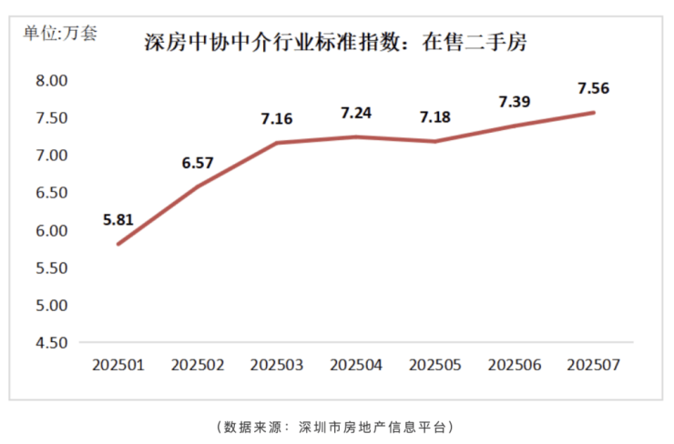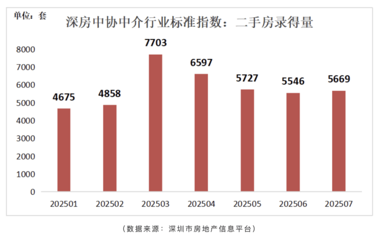 根据深圳市房地产中介协会统计,2025年7月,深圳市二手房录得(录得量系指深房中协以二手房买卖合同发起时间为口径统计的数据,并非最终成交套数)5669套,环比增长2.2%,同比增长5.4%。