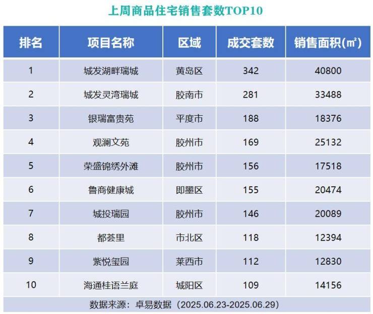 从各项目成交套数来看,位于西海岸新区的城发湖畔瑞城以成交342套的成绩列榜单首位;位于西海岸新区的城发灵湾瑞城以成交281成绩上榜第二位;位于平度市的银瑞富贵苑以成交188套的成绩列榜单第三位。