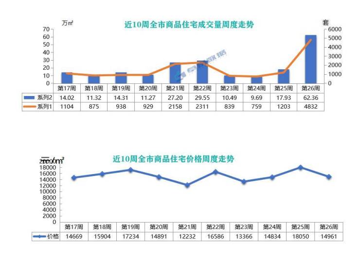 根据卓易数据统计,上周(6.23-6.29)青岛新建商品住宅成交4832套,成交面积为62.36万㎡。