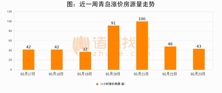 根据诸葛找房数据显示,青岛24小时涨价房源量为43套,较05月22日减少5套,环比下降10.4%。与此同时,涨价房源占比小幅回落,对于购房者来说是一个入市窗口期,购房者可抓住时机入市。