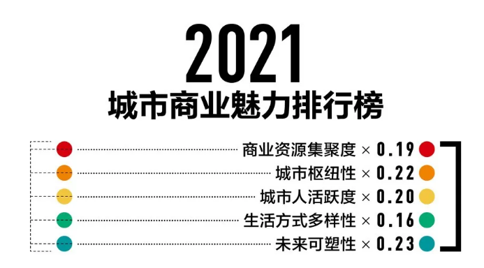 《2021中国城市商业魅力排行榜》从五个维度进行城市商业魅力排行。