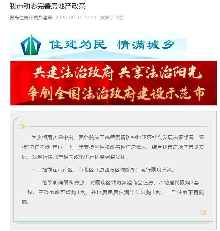 一、继续在市南区、市北区(原四方区域除外)实行限购政策。