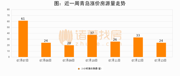 根据诸葛找房数据显示,青岛24小时涨价房源量为24套,较07月12日减少9套,环比下降27.3%。与此同时,涨价房源占比小幅回落,对于购房者来说是一个入市窗口期,购房者可抓住时机入市。
