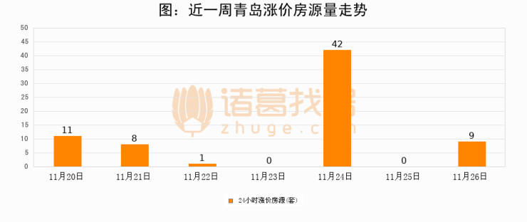 根据诸葛找房数据显示,青岛24小时涨价房源量为9套,较11月25日增加9套,环比上涨0%。与此同时,涨价房源占比小幅扩大,业主信心有所提升。