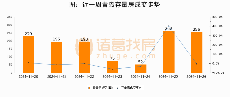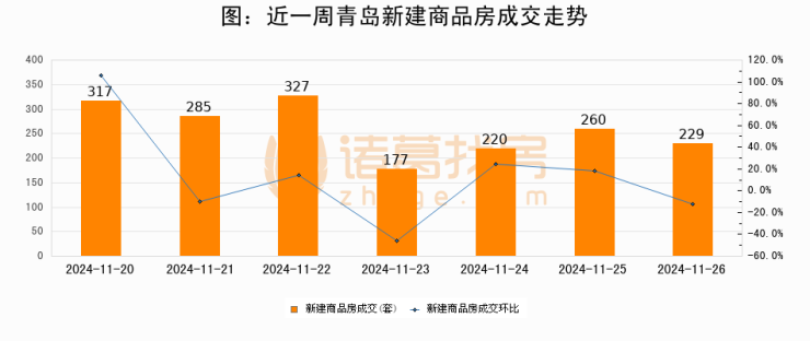【青岛成交日报】11月26日新房成交229套、二手房256套;涨价房源9套