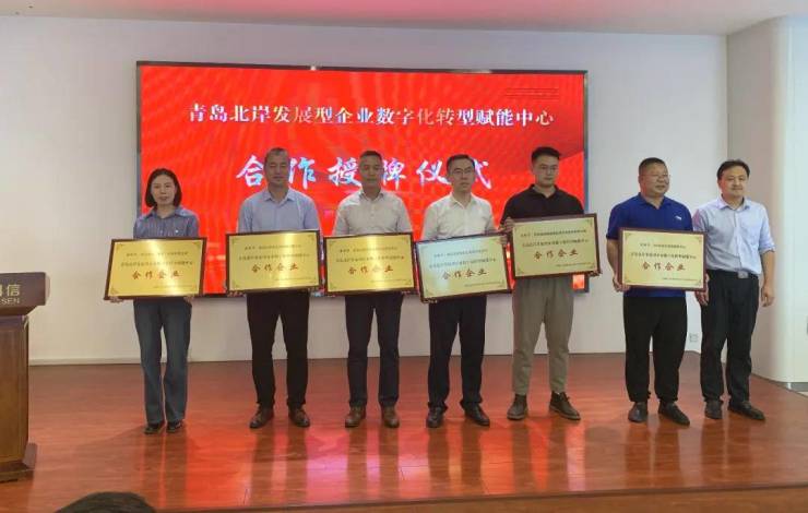 为把青岛北岸发展型企业数字化转型赋能中心建设成一流的数字化技术平台,会议现场授牌阿帕数字科技有限公司等10家行业龙头和国家工信部产教融合产业实践教授周纪念等3位专家