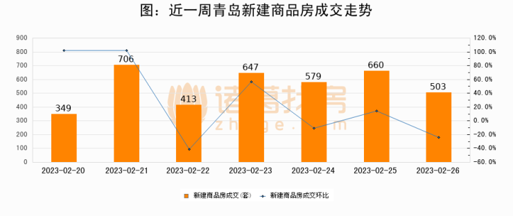 【青岛成交日报】02月26日新房成交503套、二手房35套;涨价房源383套