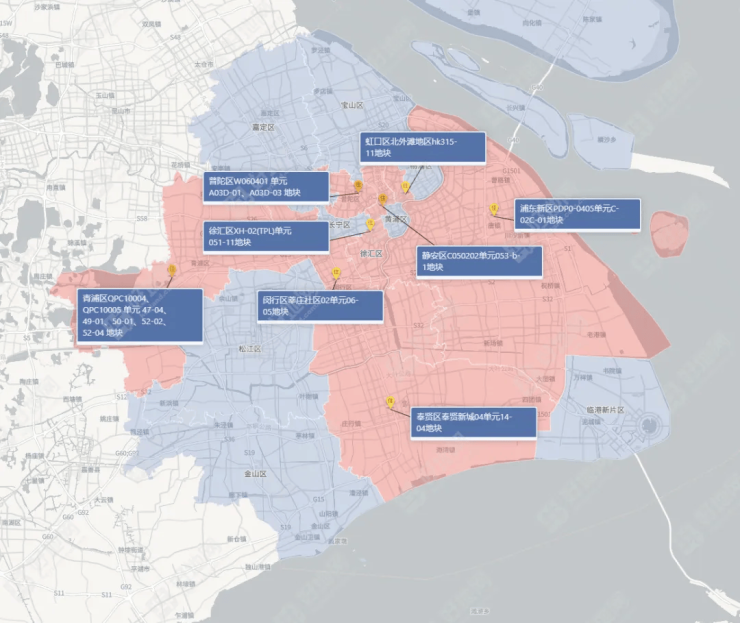 本次出让的地块中,还有两个地块组合,一是由两个子地块组成的普陀区W060401 单元 A03D-01、A03D-03 地块组合,另一个则是有五个子地块组成的青浦区QPC10004、QPC10005单元47-04、49-01、50-01、52-02、52-04地块。
