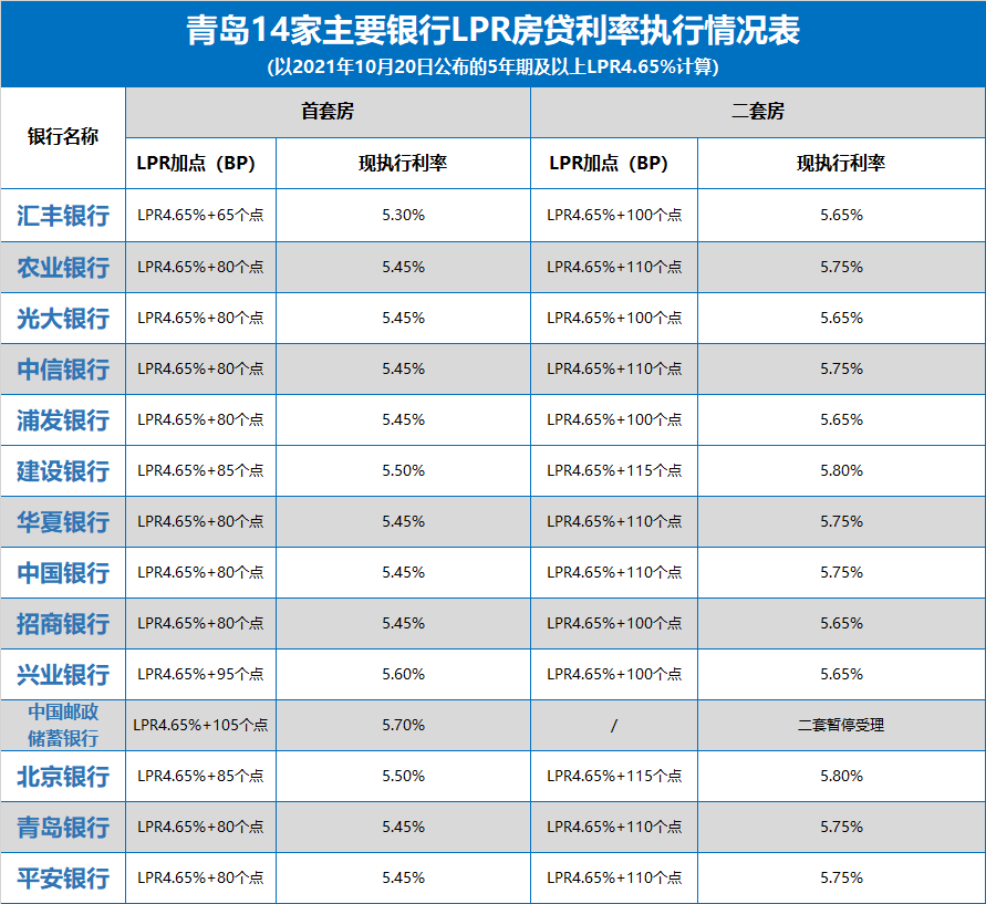 从青岛各银行的反应来看,主流执行利率首套房基本维持在5.45%左右,二套房维持在5.75%左右。