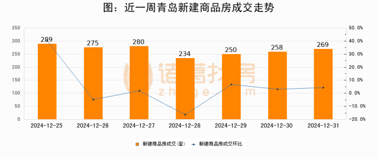 【青岛成交日报】12月31日新房成交269套、二手房170套;涨价房源59套