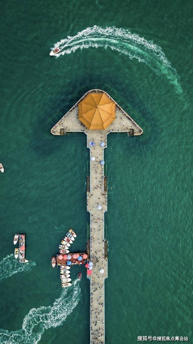 创作灵感:栈桥浮在海面上,像一支蓄势待发的箭,游艇在海面上划出一道“弯弓”,整体体现出城市极速发展的趋势。