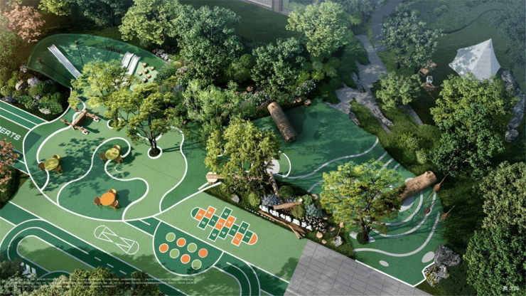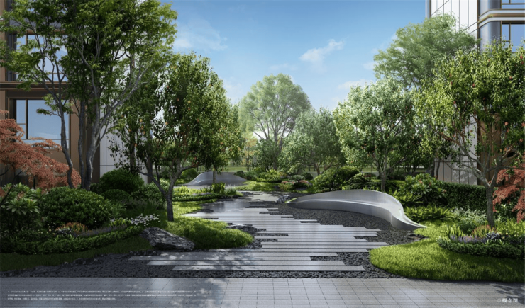 在园林设计上,汇豪兰庭不再是景观的简单堆砌,而是赋予园林更多的社交功能,通过口袋公园,以及区分静谧的低密宅间花园与活力开放的组团共享空间,打造全龄、全时、全面呵护的成长社区。