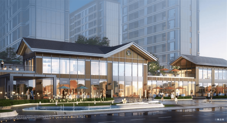 商业花街作为社区外盒,采用情景开放式设计,在城市与社区之间打造一个两者共享的空间,购物、文化、餐饮、休闲、娱乐等为一体,满足生活全需,为静雅生活带来人间烟火气。