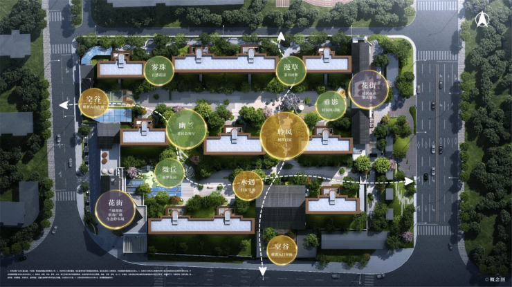 12大功能空间,根据全龄业主的生活需求,集休闲、社交、玩乐等多元内容于一体,构建优质共享的社区底盘。2条商业花街,通过街角公园的衔接,消弭生活的边界,为社区创造更具风情化的休闲生活。