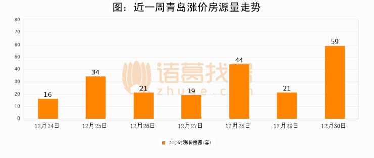根据诸葛找房数据显示,青岛24小时涨价房源量为59套,较12月29日增加38套,环比上涨181%。与此同时,涨价房源占比小幅扩大,业主信心有所提升。
