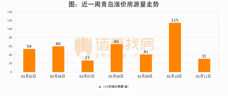根据诸葛找房数据显示,青岛24小时涨价房源量为31套,较03月10日减少84套,环比下降73%。与此同时,涨价房源占比小幅回落,对于购房者来说是一个入市窗口期,购房者可抓住时机入市。