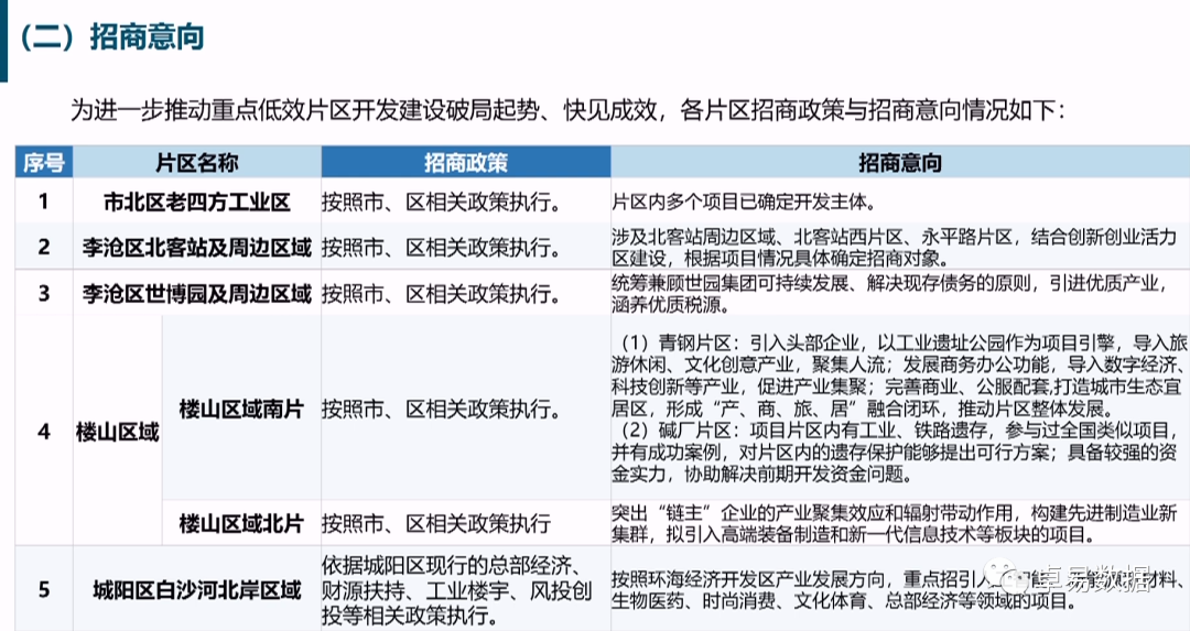 一、青岛市土地储备整理中心介绍重点低效片区(园区)基本情况及开发建设概况;