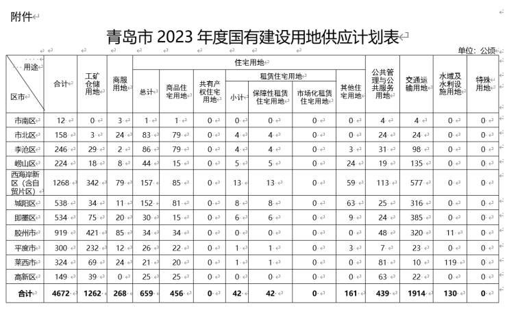 青岛今年计划供地4672公顷 其中商品住宅用地456公顷