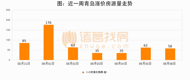 根据诸葛找房数据显示,青岛24小时涨价房源量为58套,较09月05日减少4套,环比下降6.5%。与此同时,涨价房源占比小幅回落,对于购房者来说是一个入市窗口期,购房者可抓住时机入市。