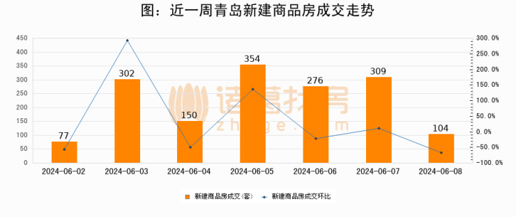 【青岛成交日报】06月08日新房成交104套、二手房32套;涨价房源20套