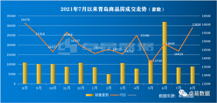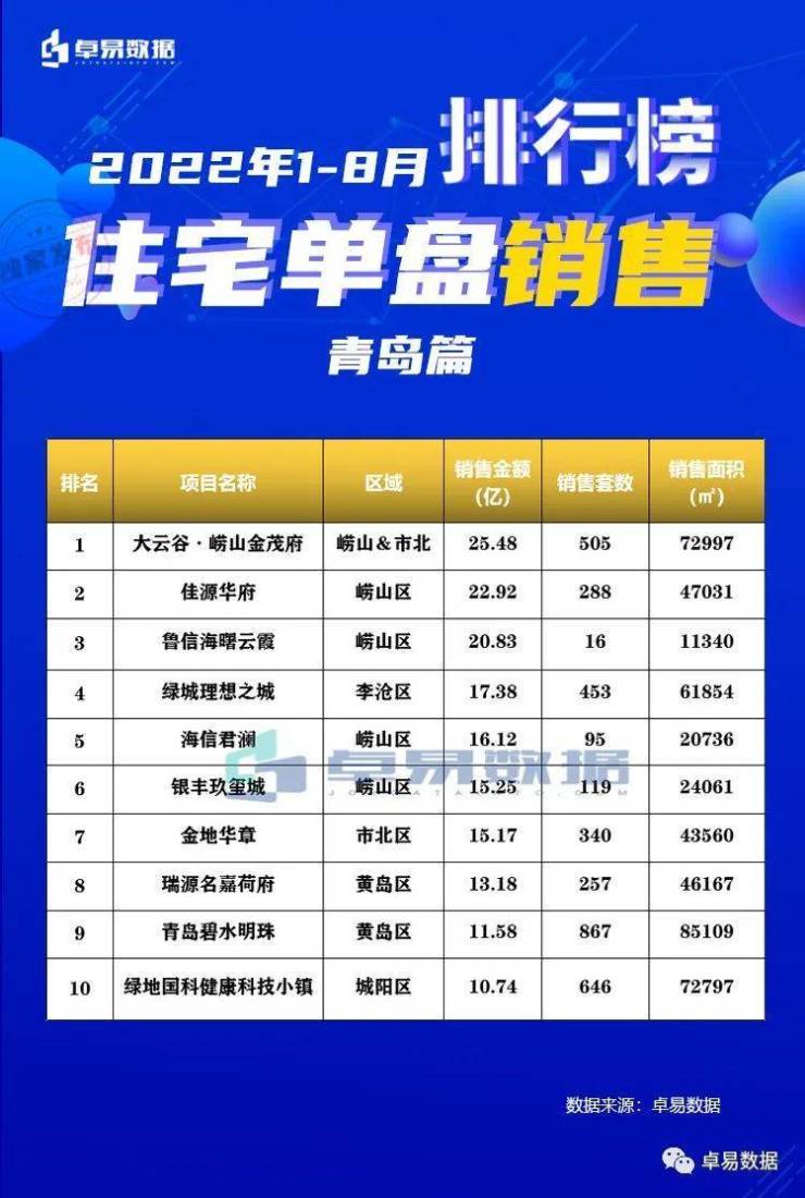 2022年1-8月青岛楼市销售榜 8月新房环比上涨成交8879套