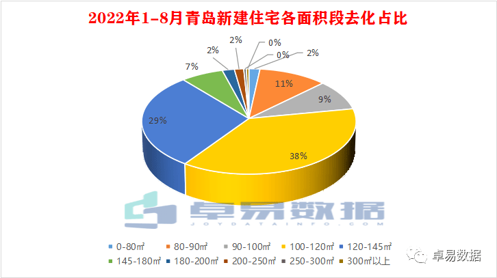 今年1-8月,在全市的商品住宅去化中,100-120㎡面积段成交最多,其次是120-145㎡,两个面积段加起来合计约67%。