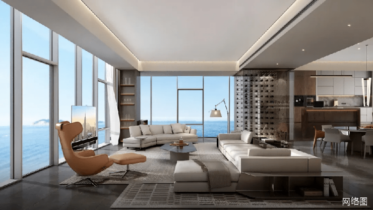 在户型设计方面,青特缦云通过极具突破性的超大面宽、270°观景大方厅、大面玻璃窗运用,尽最大可能把更多海景引入室内;同时,LDKG一体化设计,使得空间感与观海视野得到更大程度的拉伸。从烹饪到聚餐、从读书到亲子游戏,风景一揽入怀,真正让自然湾海映照进生活的方方面面。